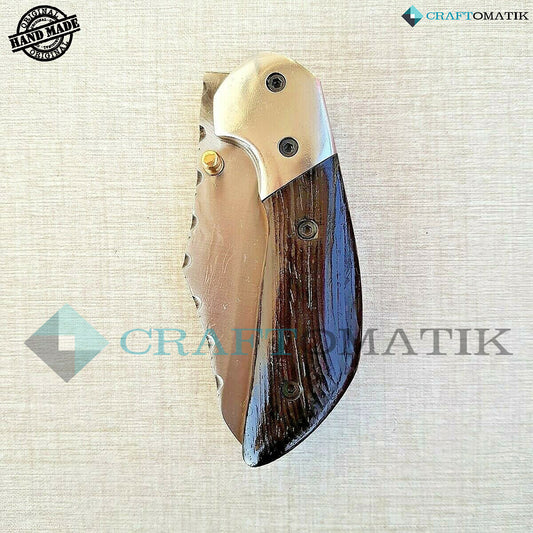 Steel Folding Knife | Pocket Knife Jack Knife | 1045C Carbon Steel Blade | Walnut Wood, Steel Grip | Handmade Outdoor Camping Knife | FK12
