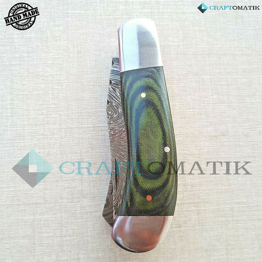 Two Blade Damascus Folding Knife | Pocket Knife Jack Knife | Micarta, Steel, Brass Pins Grip | Handmade Damascus Outdoor Camping Knife | FK18