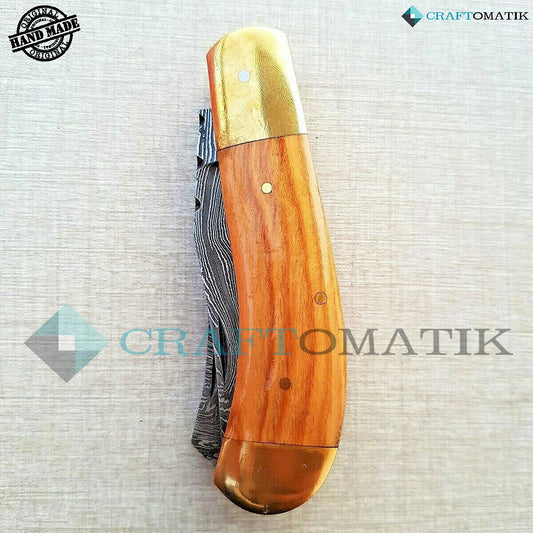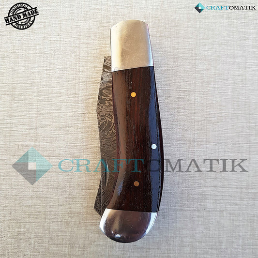 Two Blade Damascus Folding Knife | Pocket Knife Jack Knife | Rose Wood, Brass, Brass Pins Grip | Handmade Damascus Outdoor Camping Knife | FK19