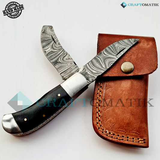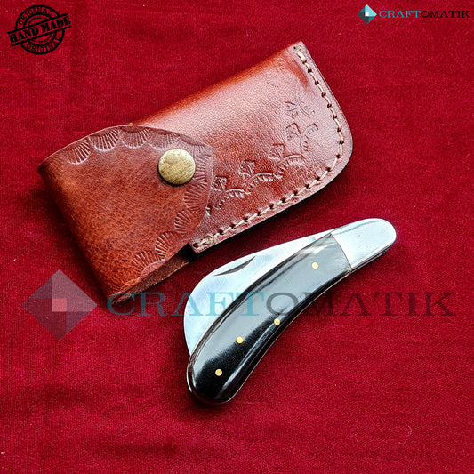 Steel Folding Knife | Pocket Knife Jack Knife | Curve Stainless Steel Blade | Buffalo Horn Grip | Handmade Outdoor Camping Knife | FK53