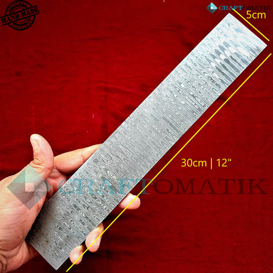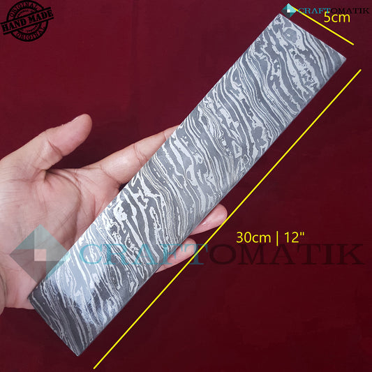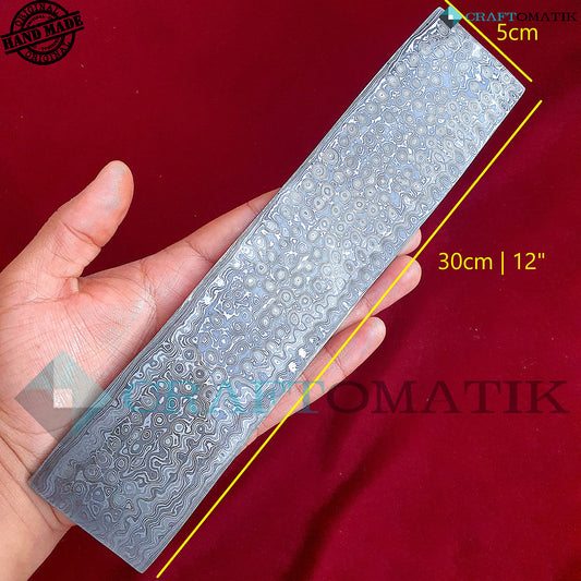 Damascus Steel Bar | Raw Damascus Plate | 1095 + 15N20 Damascus steel | 30 cm - 12” | RAIN DROP pattern - DB03