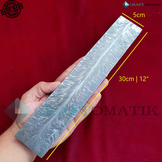 Damascus Steel Bar | Raw Damascus Plate | 1095 + 15N20 Damascus steel | 30 cm - 12” | FEATHER pattern - DB04