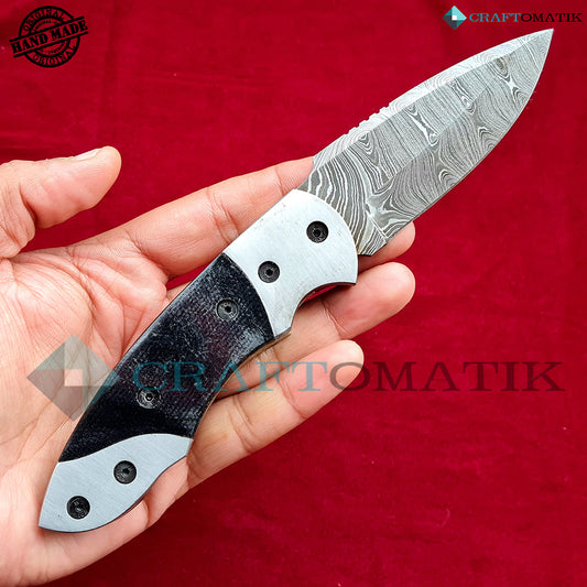 Two Blade Damascus Folding Knife | Pocket Knife Jack Knife | Micarta, Steel, Brass Pins Grip | Handmade Damascus Outdoor Camping Knife | FK39