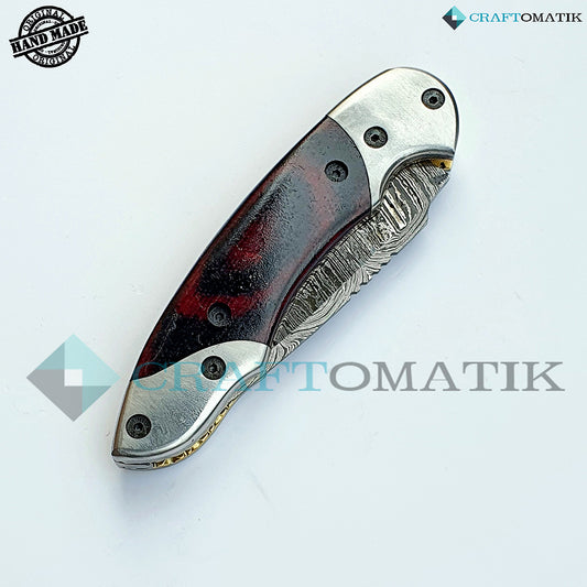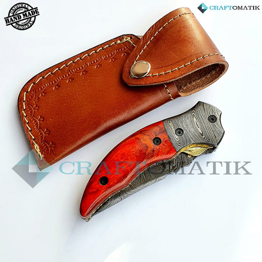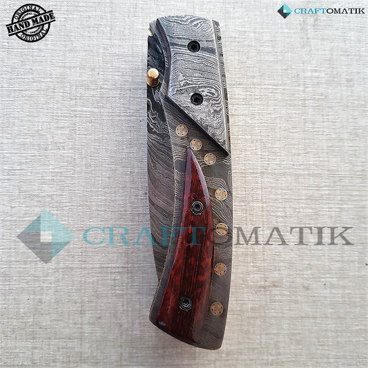 Elite Full Damascus Folding Knife | Pocket Knife Jack Knife | Damascus Steel, Rose Wood, Mosaic Pins Grip | Handmade Damascus Outdoor Camping Knife | FK21