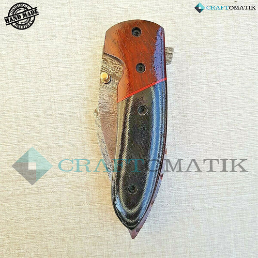 Damascus Folding Knife | Pocket Knife Jack Knife | Walnut Wood, Micarta Resin Grip | Handmade Damascus Outdoor Camping Knife | FK07