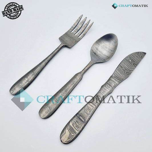 Damascus Steel Cutlery Set | Hand made | HFTC16x