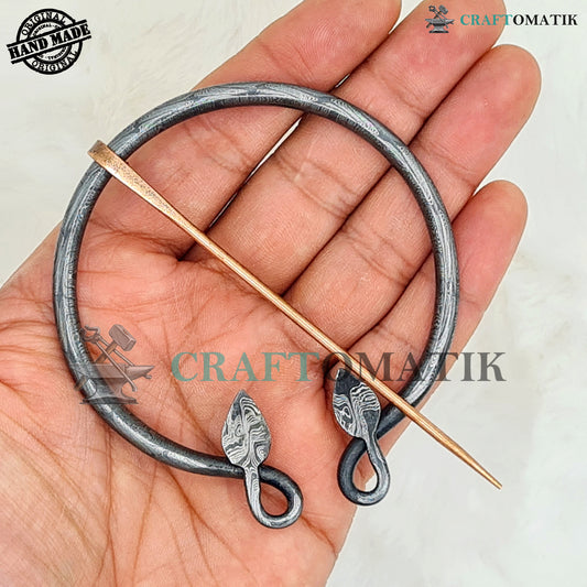 Medieval Brooch | Wrought Iron Ring and Needle | Handmade Viking LARP Fibula Ring Clasp Garment Pin | HFRC25