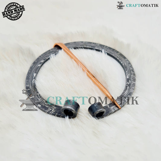 Damascus Medieval Brooch | Damascus Steel Ring | Brass Needle | Handmade Viking LARP Fibula Ring Clasp Garment Pin | HFRCD05