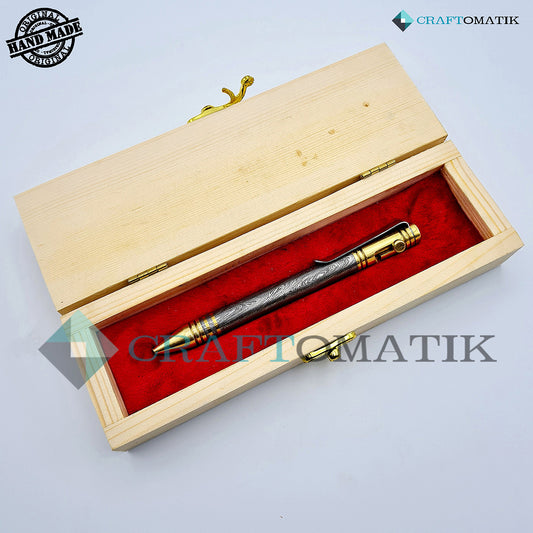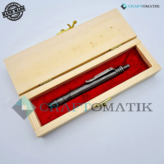 Damaszener Stahl Kugelschreiber Geschenkset | Handgefertigtes Stiftset aus Damaszener Stahl | DP01