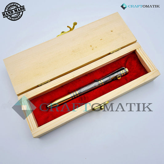 Damaszener Stahl Kugelschreiber Geschenkset | Handgefertigtes Stiftset aus Damaszener Stahl | DP03